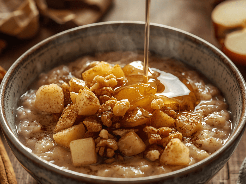 5. Divide oatmeal into bowls, sprinkle with walnuts, and serve with extra cinnamon and honey if desired.