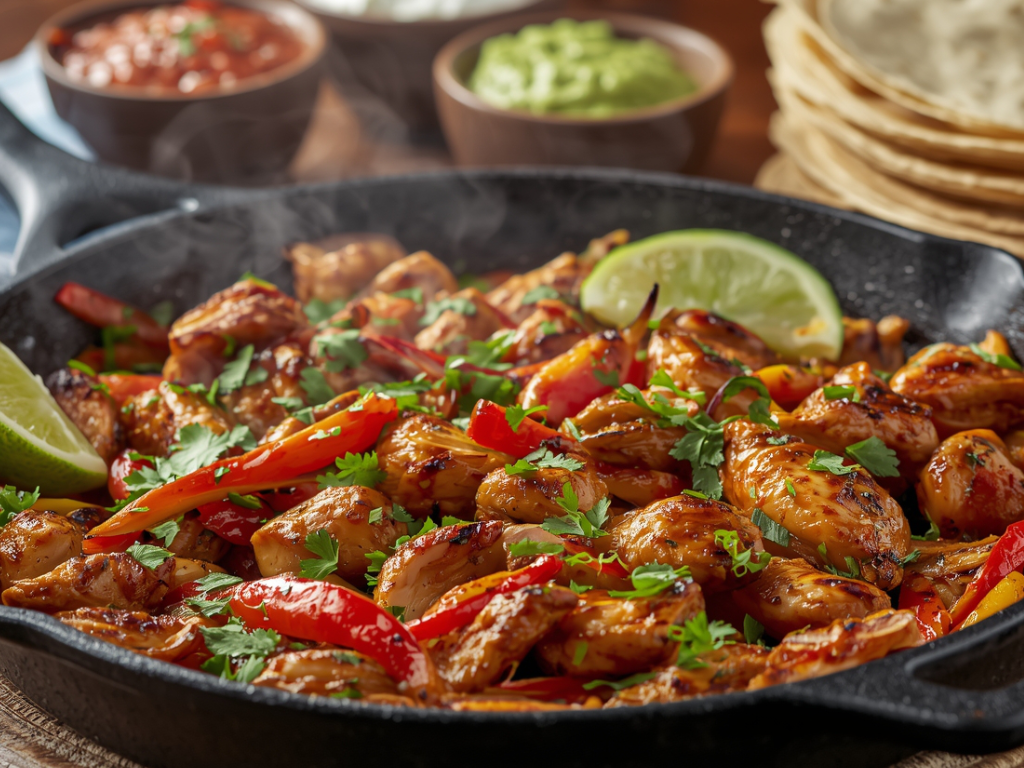 Chicken Fajitas are a Tex-Mex favorite made with juicy strips of chicken, colorful bell peppers, and onions, all seared to perfection in a sizzling skillet. Served with warm tortillas and your favorite toppings like salsa, sour cream, or guacamole, these fajitas are bold, flavorful, and incredibly satisfying. Perfect for lunch or dinner, this dish comes together quickly and is great for both family meals and casual entertaining. The best part is how customizable it is – everyone can build their own fajita just the way they like it, making it a fun and interactive meal.