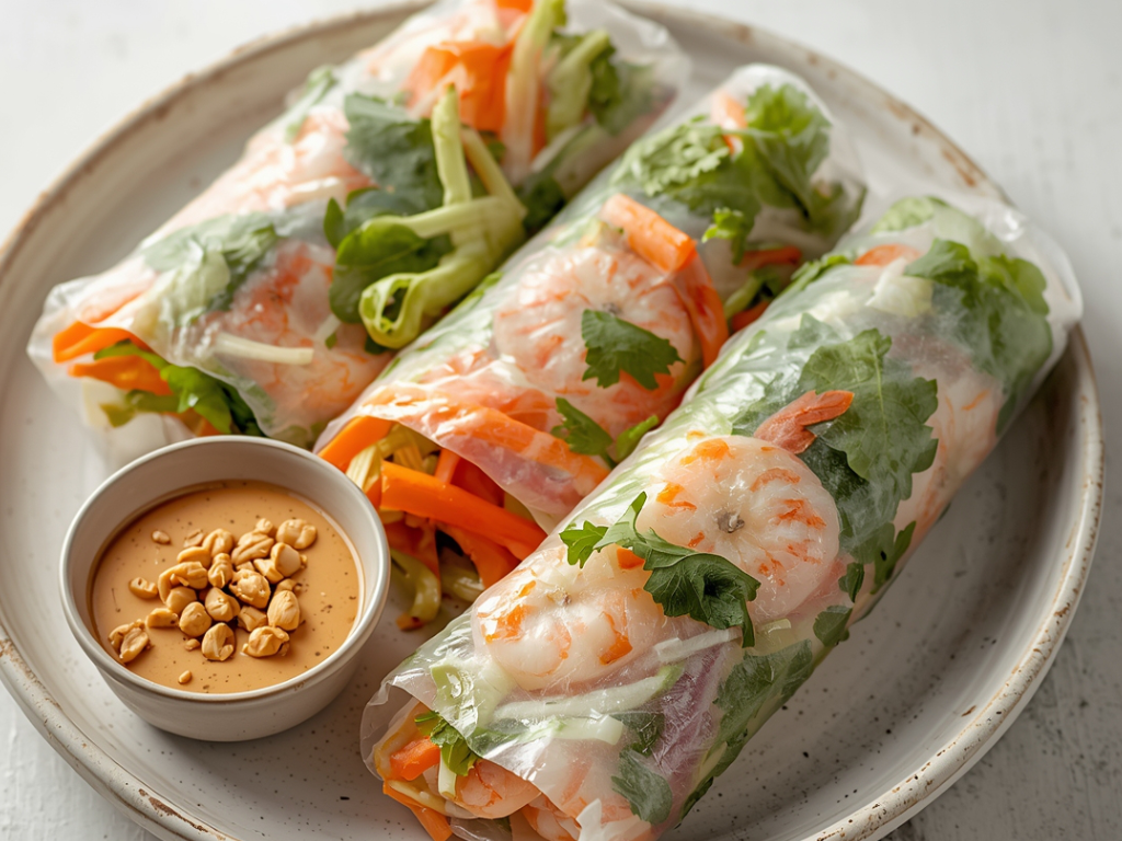 - Serve fresh rolls immediately with peanut sauce.