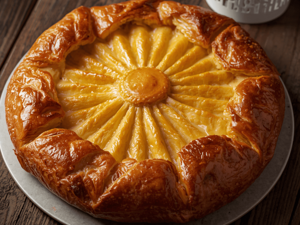 Galette des Rois, or King Cake, is a traditional French pastry enjoyed during Epiphany in January. It consists of buttery puff pastry filled with a rich almond cream called frangipane. Hidden inside is often a small figurine, known as a fève, and the person who finds it in their slice is crowned king or queen for the day. With its golden, flaky crust and luscious almond filling, Galette des Rois is both festive and delicious, making it a centerpiece for celebrations and gatherings.