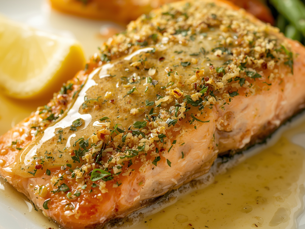 Herb-Crusted Salmon with Garlic Butter Sauce