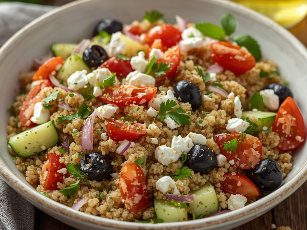 Mediterranean Quinoa Salad is a vibrant and wholesome lunch packed with fresh vegetables, protein-rich quinoa, tangy feta cheese, and a zesty lemon-olive oil dressing. Light yet filling, this salad is perfect for meal prep, picnics, or a quick and healthy lunch at home. With bright flavors from cucumber, tomato, olives, and parsley, it’s a refreshing dish that can be enjoyed on its own or as a side with grilled chicken or fish. Naturally gluten-free and easily made vegetarian or vegan, this salad is both versatile and nourishing.