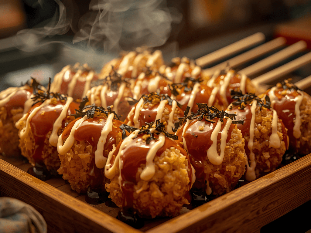 Takoyaki tastes best eaten immediately while hot and crispy.