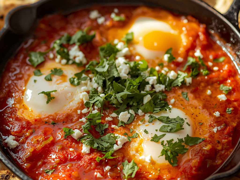 - Serve: Bring the skillet directly to the table and serve hot with warm pita, challah, or crusty bread for dipping into the rich sauce and creamy yolks.
